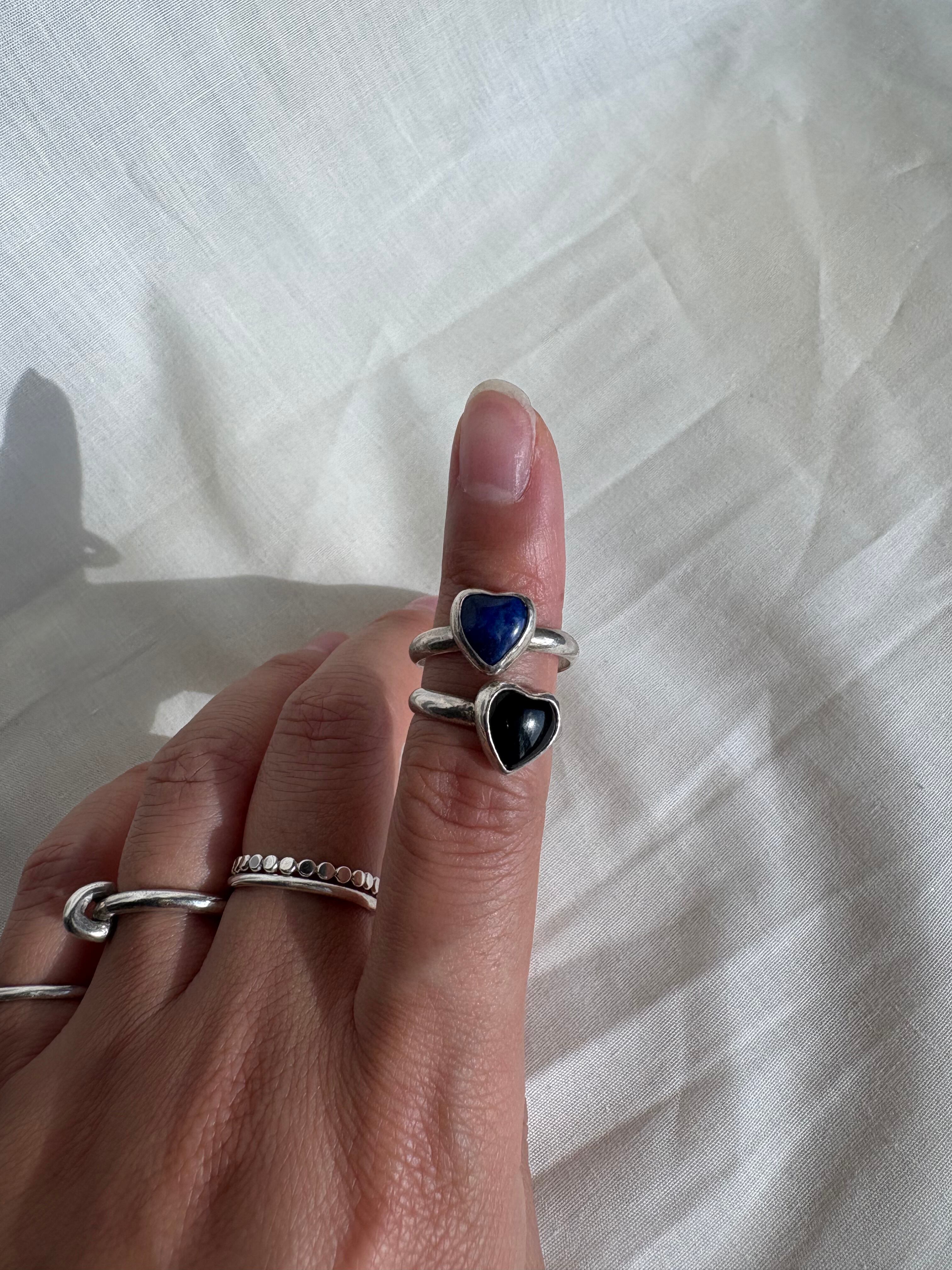 ハートのオニキスとラピスラズリを留めました