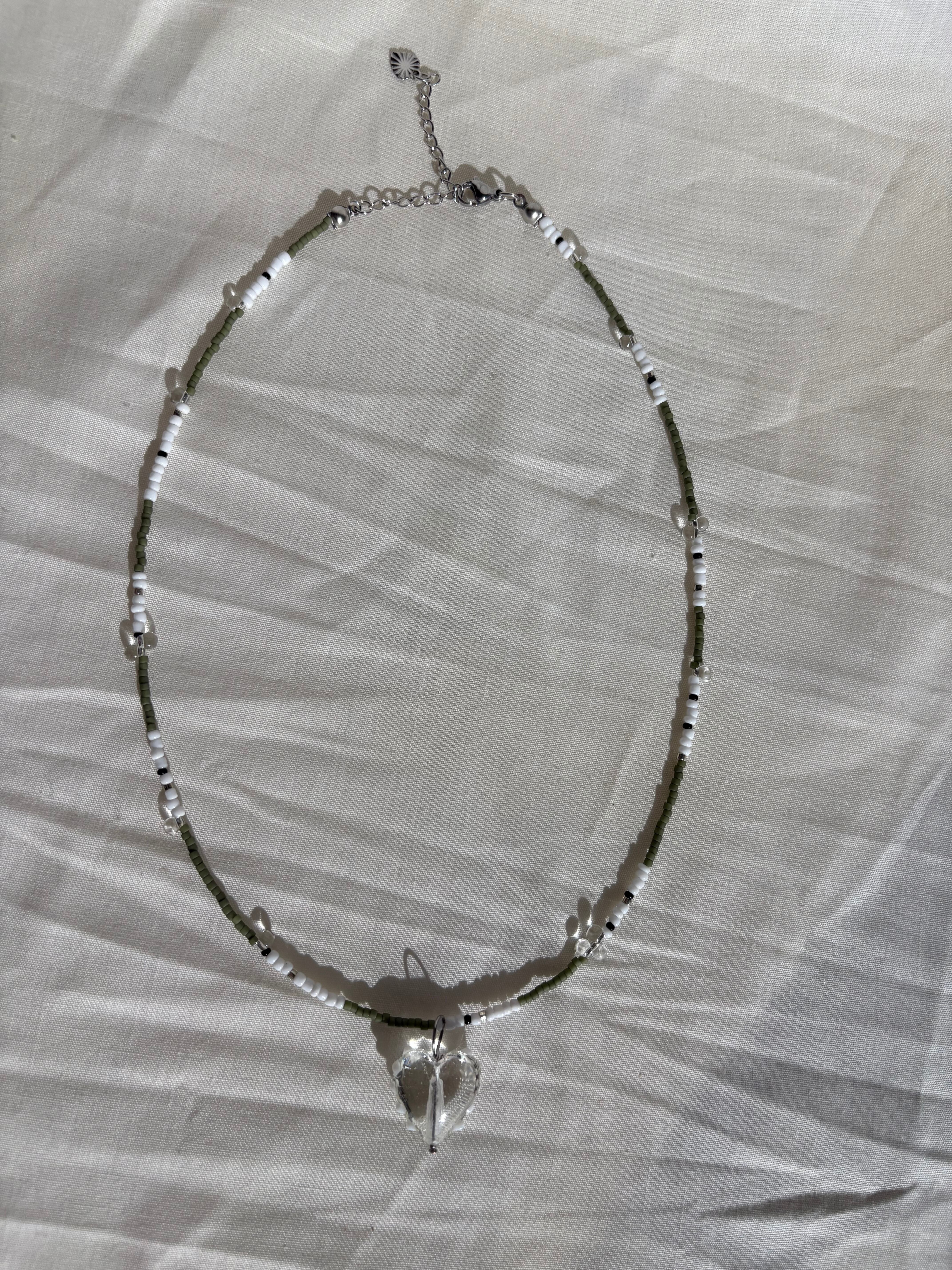 素材/ アクリルビーズ、ステンレス金具、ビンテージビーズ、ガラスチャーム