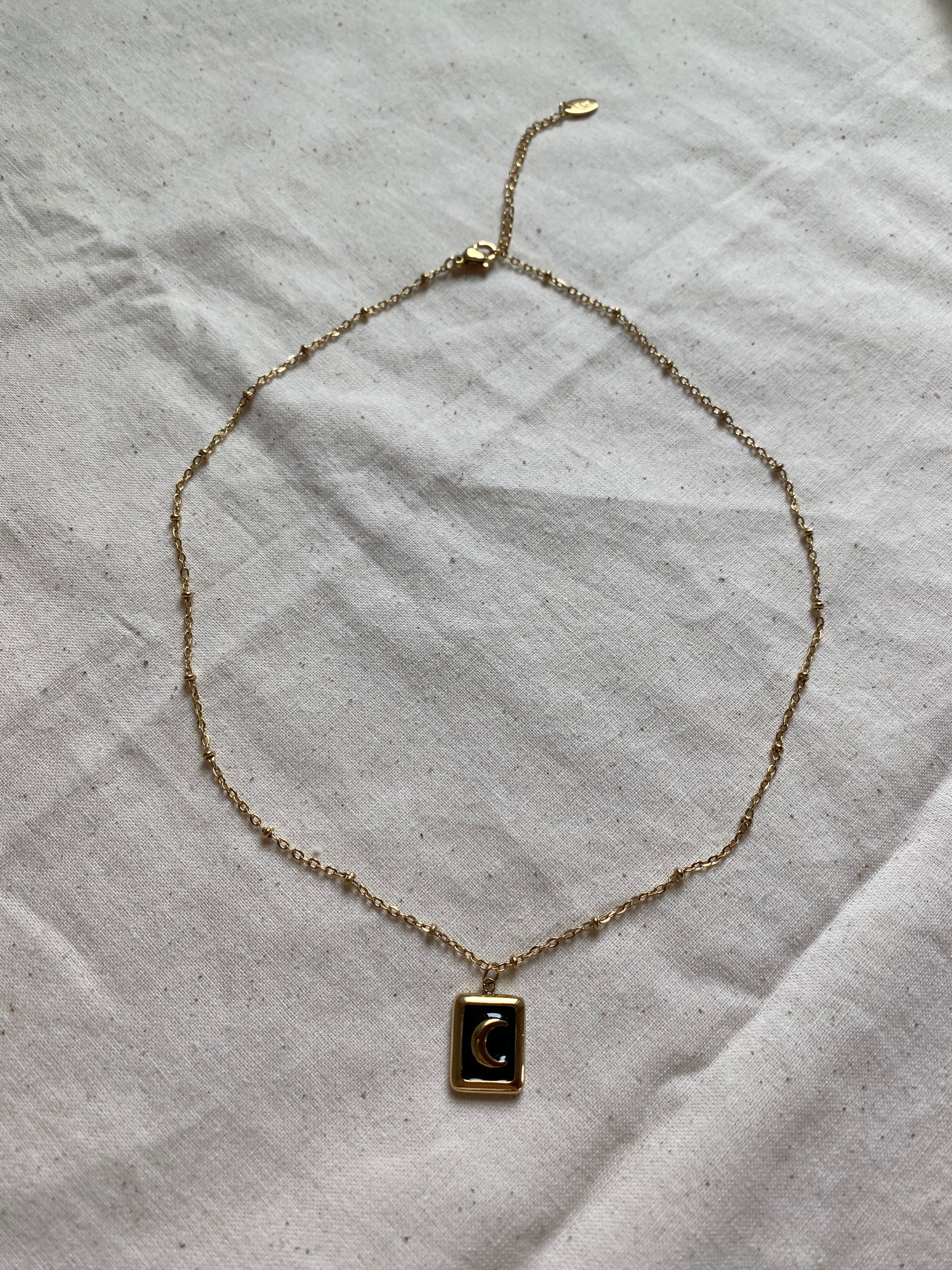 つぶつぶチェーンとクールな月のプレートネックレスです。